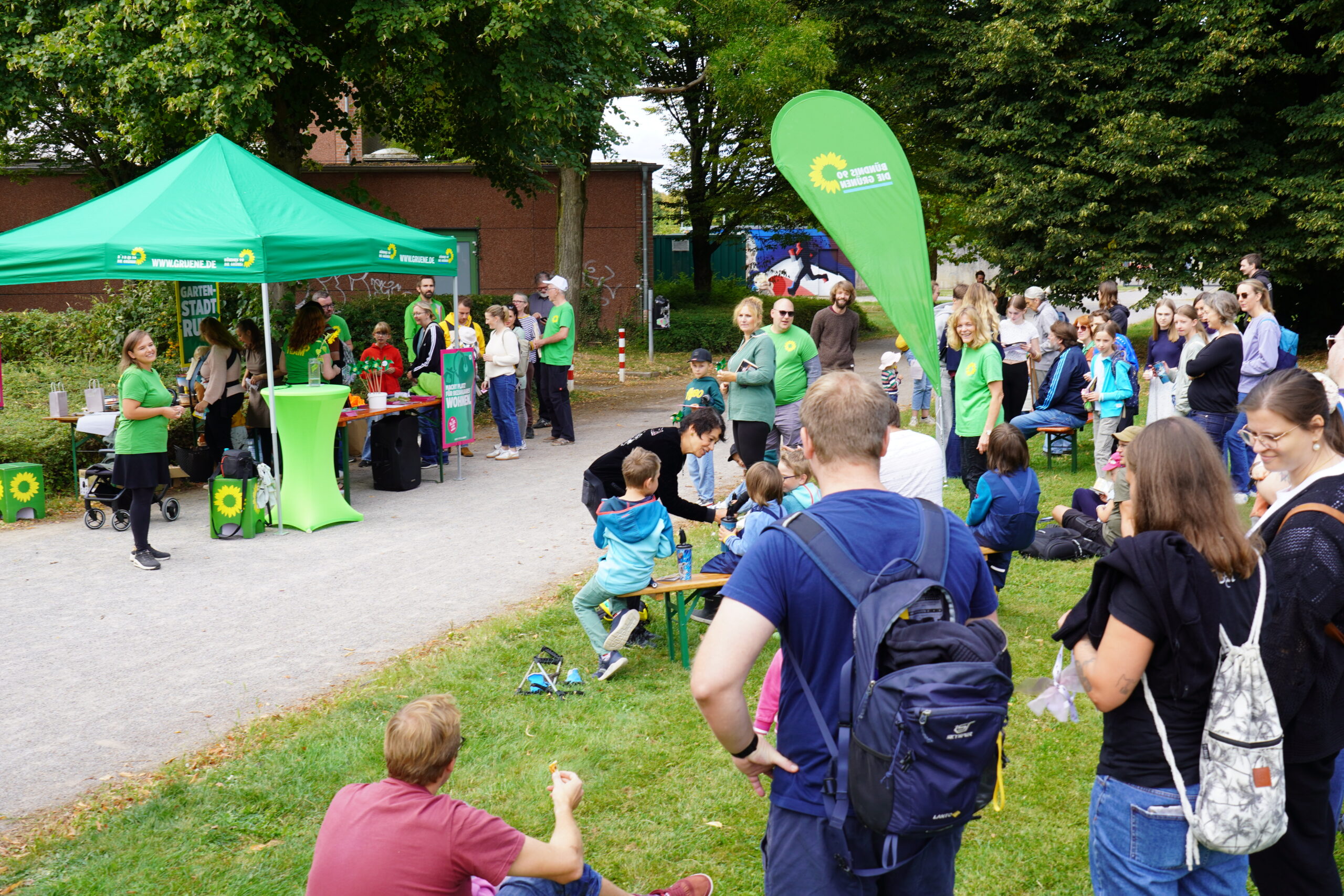 Unter dem Motto #GemeinsamBachaufwärts haben die GRÜNEN Dinslaken am Sonntag, den 24. August 2025, zu einer großen Müllsammelaktion am Rotbach eingeladen. Rund 70 Menschen folgten dem Aufruf und packten gemeinsam an, um die Wege zwischen Eppinkstraße und Kreuzstraße von Abfällen zu befreien. Auch Bürgermeisterkandidatin Dr. Tagrid Yousef war vor Ort und half tatkräftig mit.
